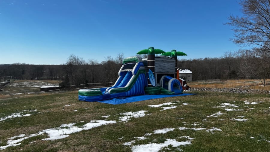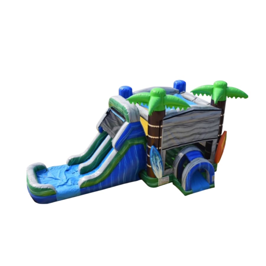 The Big Bounce of Clarksville TN has added yet another Bounce House Slide Combo to our inventory in 2022. The Tropical Bounce Combo is perfect for those surfer dudes or surfer dude-etes. Need to bring an element of the beach to your backyard? Palm trees and surf boards will do just that!