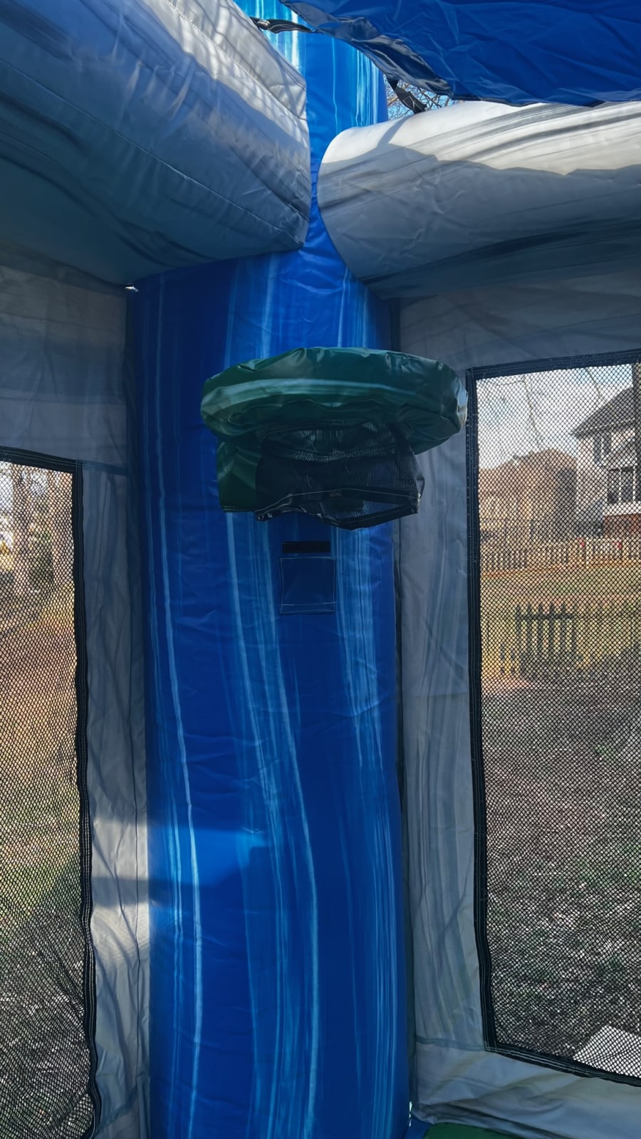 The Bounce area is 13'x13' so there is plenty of room for everyone! The Tunnel entrance is not only fun but safe in that it aids in keeping those jumpers inside the unit. There is a basketball hoop inside as well. Ready to zip down the slides? Yes, slides as in two slides for those competitive racers. Slip-resistant steps inside the bounce area lead up to the dual lane slide and netting keeps your children inside the slide enclosure. The ultra-fast slides end in a huge 12" deep pool for those hot summer days. If it's too cool outside, the tropical bounce combo can be just as fun without water. This combo is great for kids and/or adults of any age!