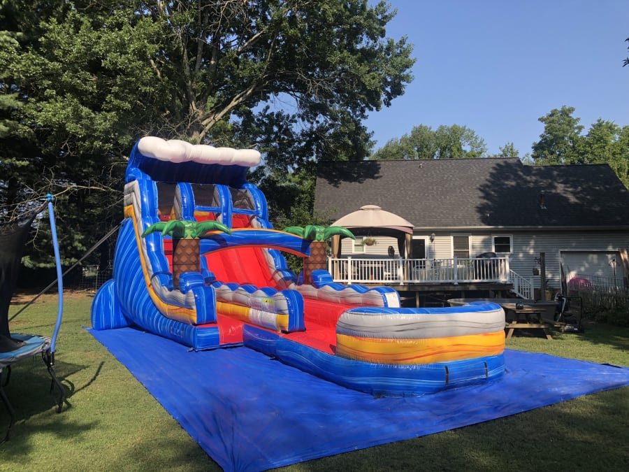 Are you ready to make a splash at your next event? Look no further than our brand new 20' Beach Time Double Lane Water Slide! This exciting inflatable slide is perfect for all ages and will provide hours of fun and entertainment.