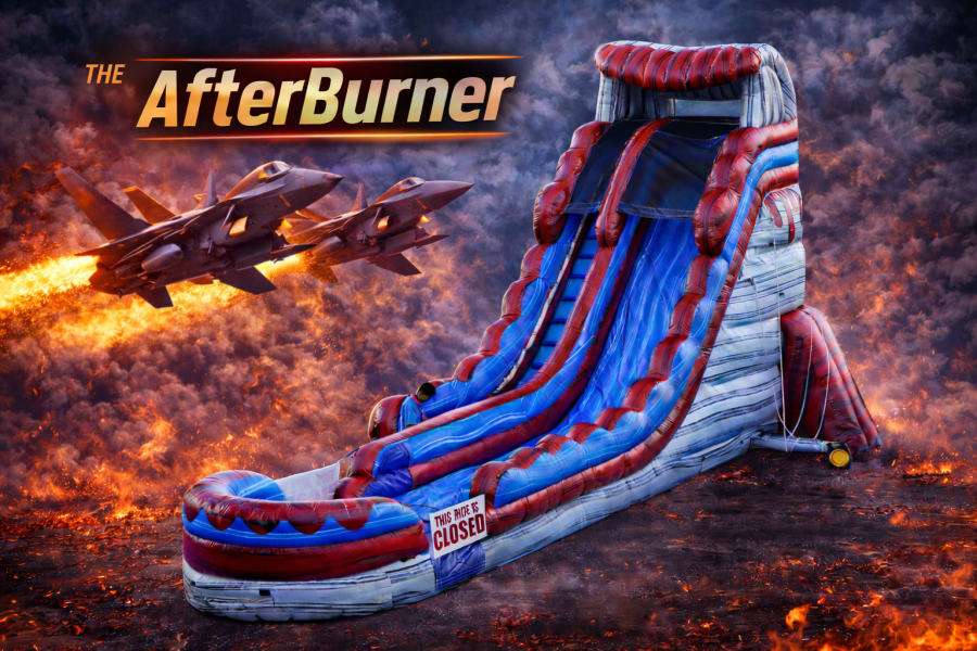 If your party needs something bigger, faster, and louder than the average water slide — The AfterBurner brings the heat.